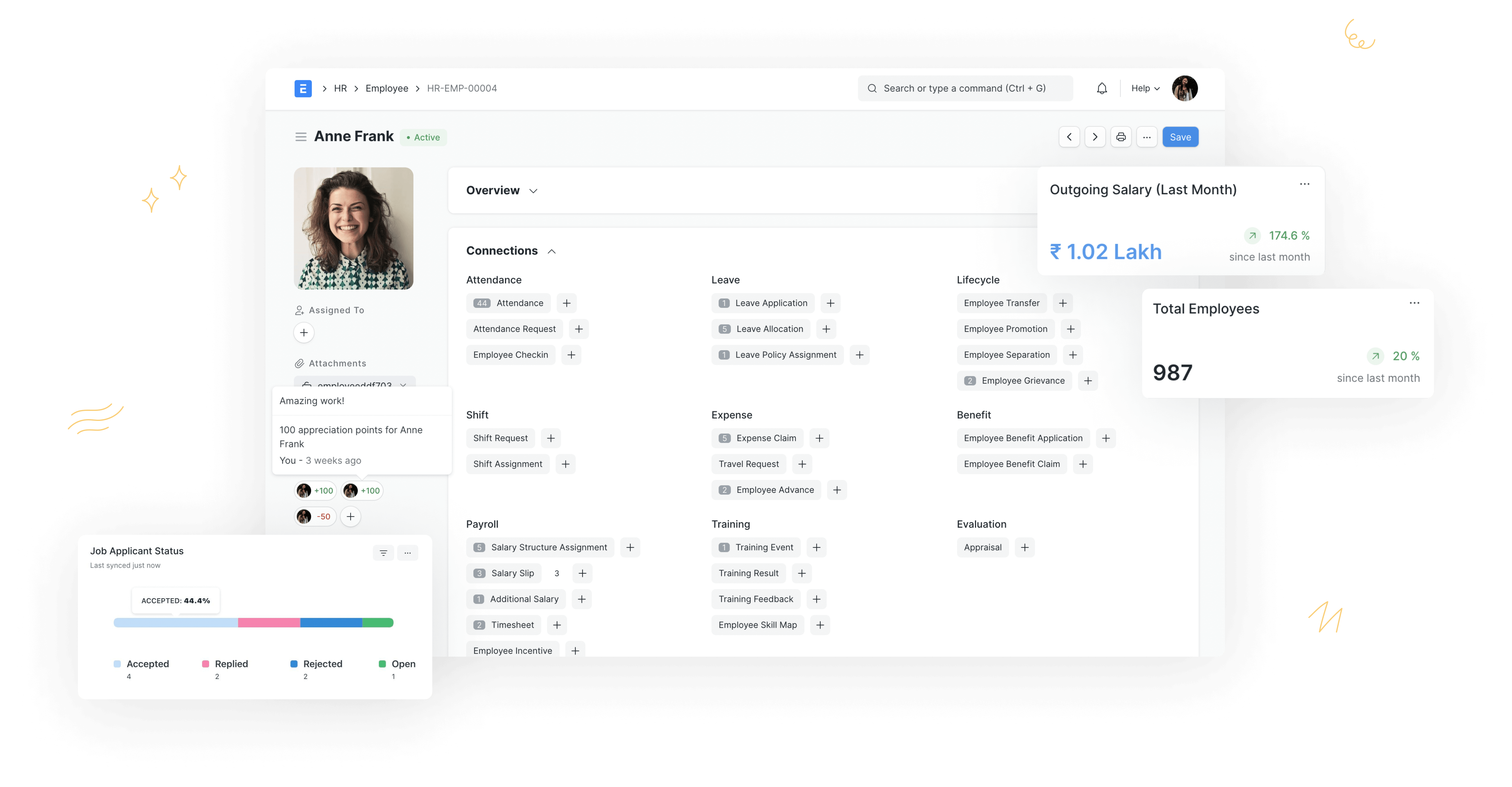 Frappe HR là giải pháp quản trị nhân sự được phát triển dựa trên PHẦN MỀM FRAPPE HR của Frappe Technologies - doanh nghiệp Công nghệ thông tin hàng đầu Ấn Độ. Đây là giải pháp mã nguồn mở 100%, được xếp hạng hàng đầu trên thế giới hiện nay, với bộ khung nền tảng là Low Code, No Code.