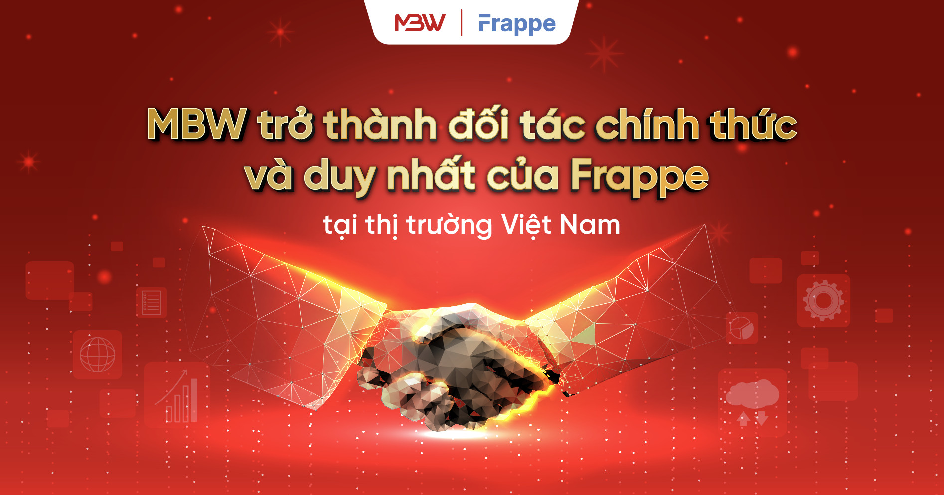 Quan hệ hợp tác giữa MBW và Frappe Technologies được xây dựng dựa trên tầm nhìn và mục tiêu về sự đổi mới trong từng sản phẩm, nhằm cung cấp những sản phẩm công nghệ hiện đại, hữu ích và tối ưu nhất cho doanh nghiệp. Đây không chỉ là một mối quan hệ hợp tác thương mại mà còn là sự kết hợp giữa tri thức, kinh nghiệm và sức mạnh của hai đơn vị. Một bên là MBW – doanh nghiệp công nghệ thông tin tại Việt Nam đã có gần 10 năm kinh nghiệm cung cấp các giải pháp số hóa quản trị doanh nghiệp, với gần 4.500 khách hàng. Một bên là Frappe – doanh nghiệp công nghệ hàng đầu Ấn Độ với các sản phẩm, giải pháp mã nguồn mở được đánh giá cao và được tin tưởng sử dụng bởi hơn 10.000 công ty trên toàn thế giới.