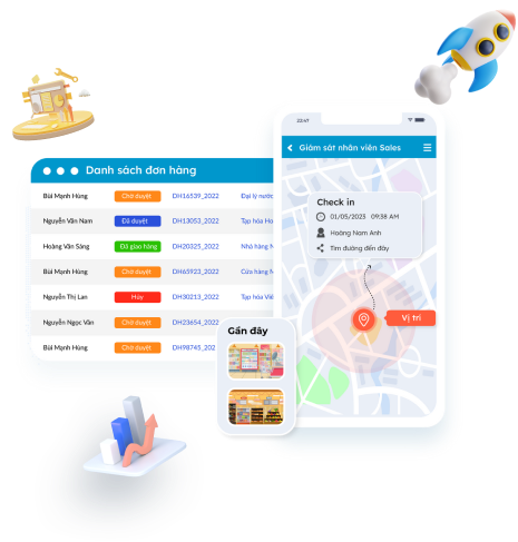 Theo dõi các hoạt động tại hiện trường của từng Sales và giám sát hiệu suất nhóm bán hàng của doanh nghiệp hiệu quả. Nắm bắt thời gian - vị trí - lộ trình di chuyển - tuyến bán hàng của nhân viên